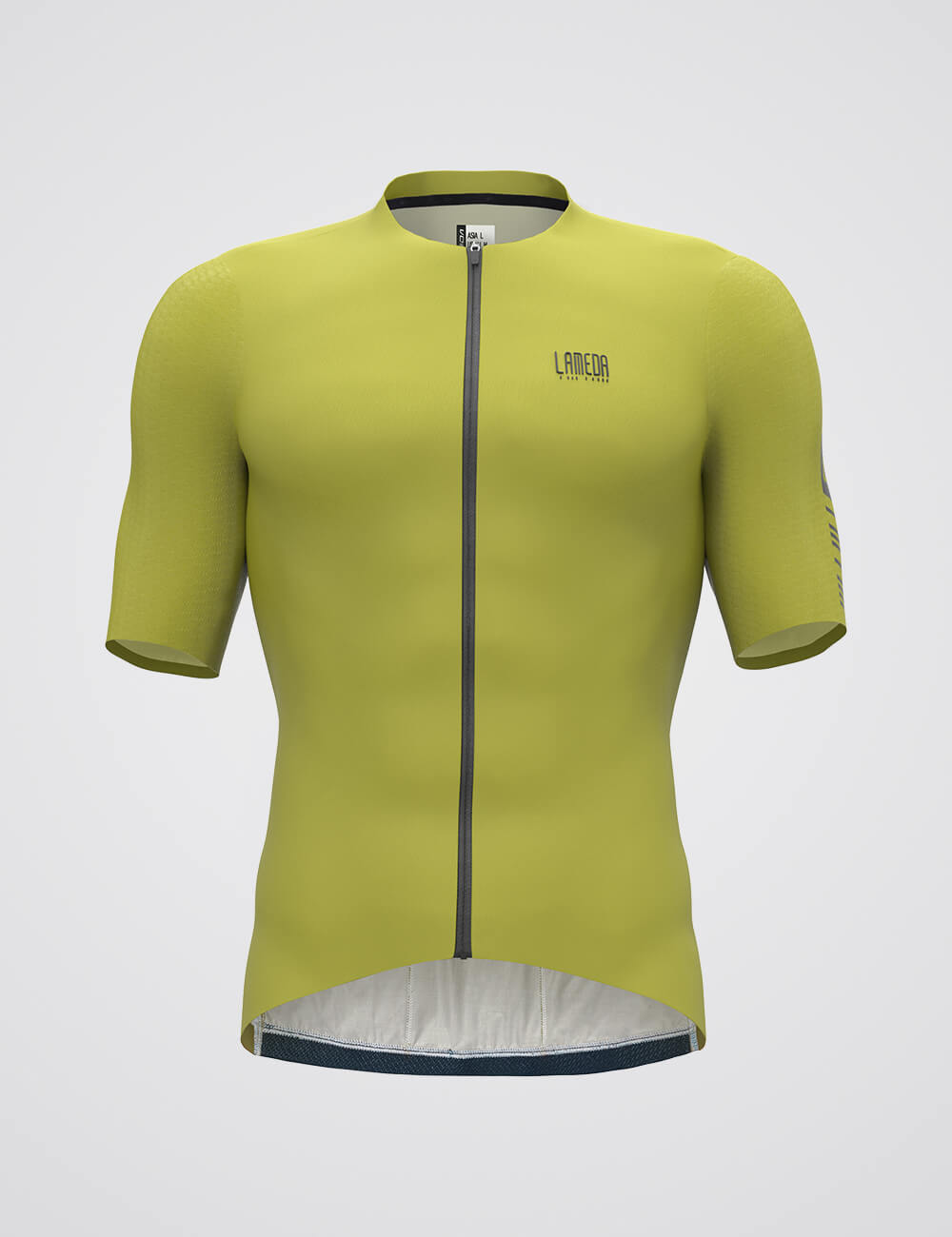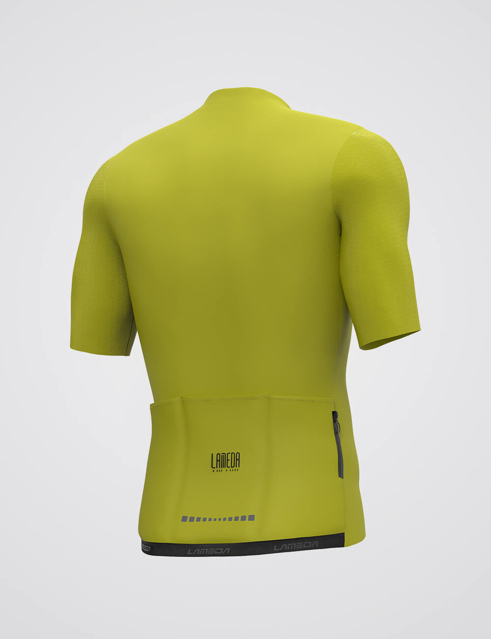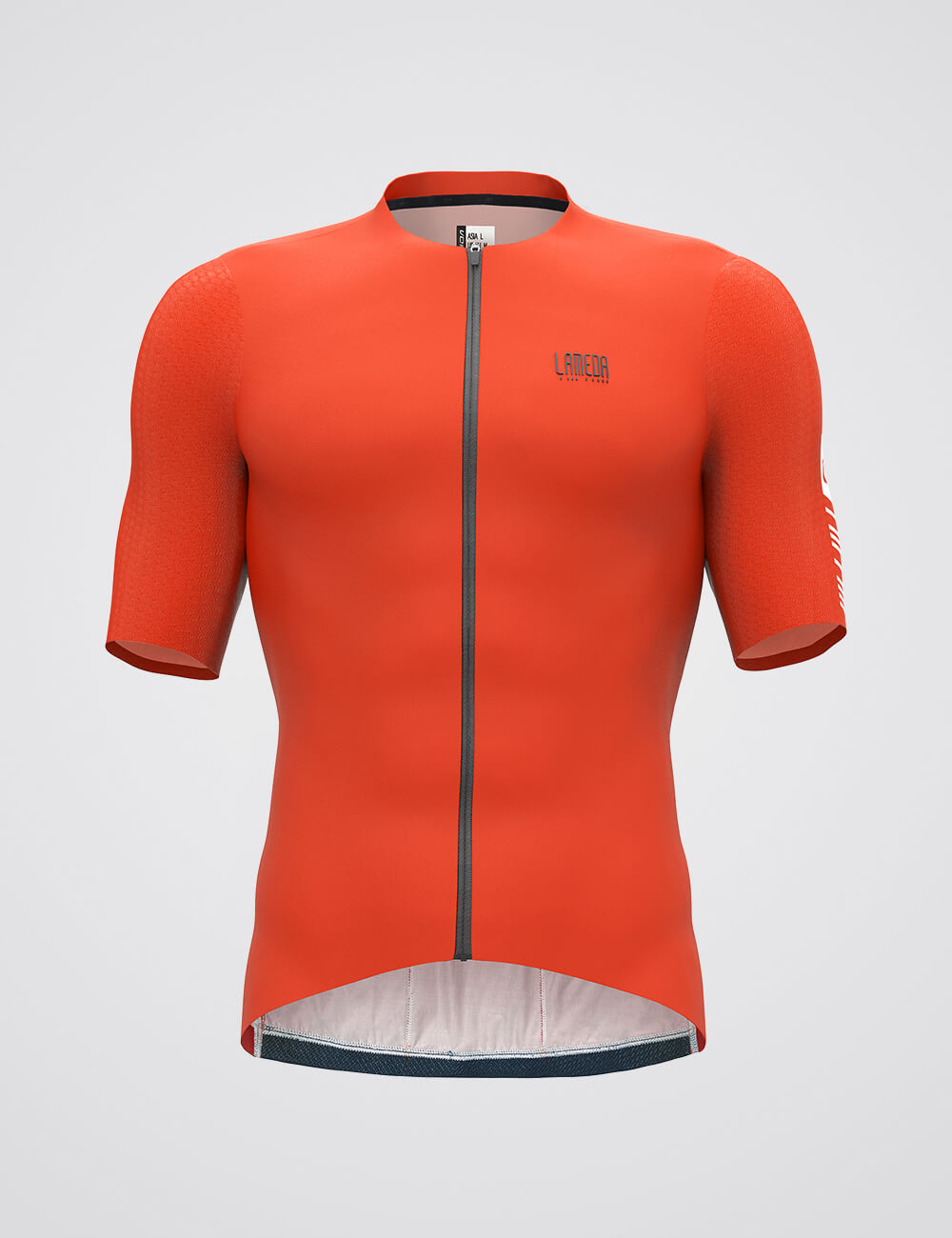 Konsep desain: jersey yang ringan dan pas yang dirancang khusus untuk kecepatan berkendara.