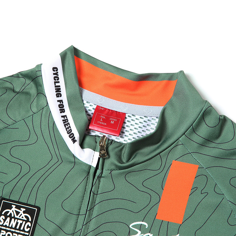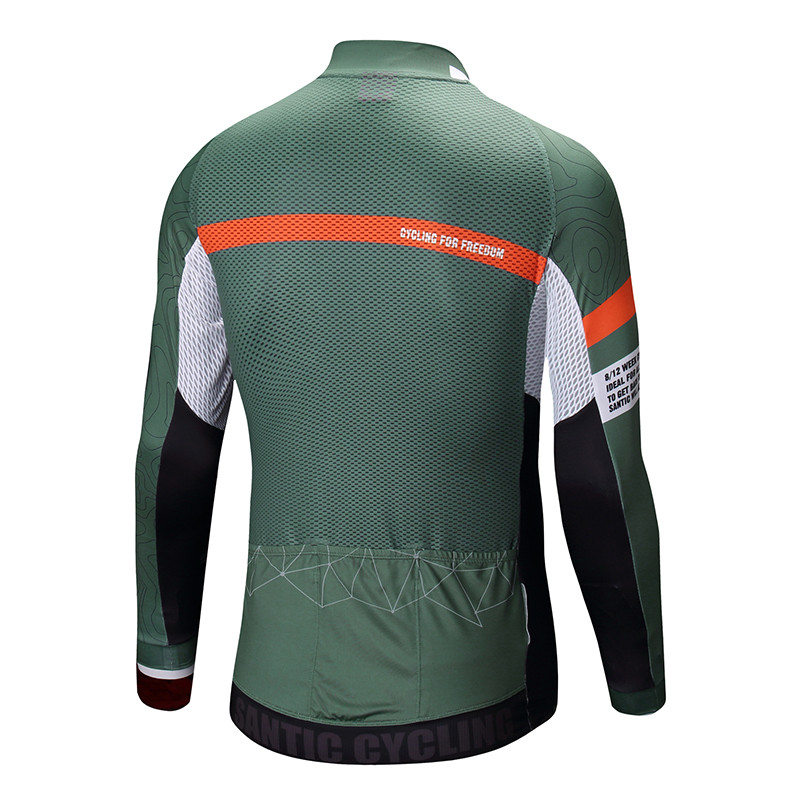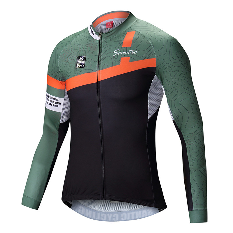 Jersey sepeda pria lengan panjang Santic Braud Green Men Cycling Jersey Long Sleeve